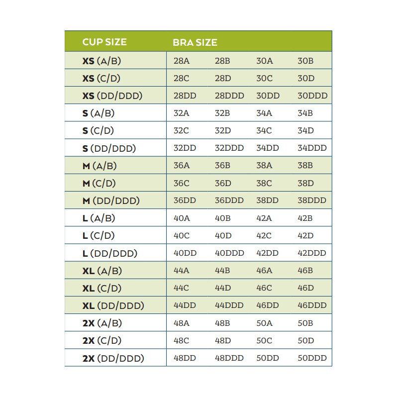 - Post Surgery Bras Sizes from Small - 32/34, Medium - 36/38, Large - 40/42, Extra Large - 44/46 and to 2X Large - 48/50 sizes.