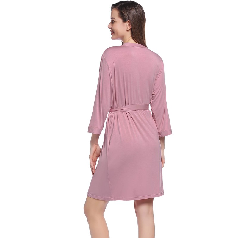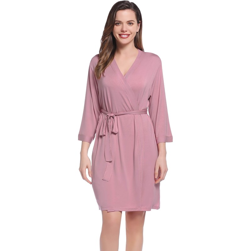 Amorbella Bamboo Travel Dressing Gown Womens Summer Lightweight Cool Short Kimono House Coat (Dusty Rose, Large)