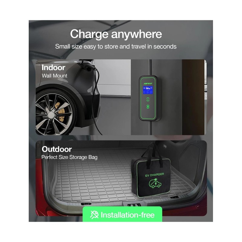 - CHARGE EVERYWHERE & INSTALLATION-FREE:Use Ampolt EV Charger Level 1&2 wherever you need, whether at home, in the workplace, or on the go. It's always ready to charge your car with no installation required