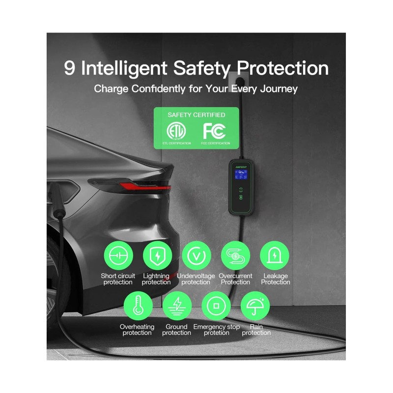 Ampbolt Level 1&2 Portable EV Charger 16 Amp 110-240V,Elect