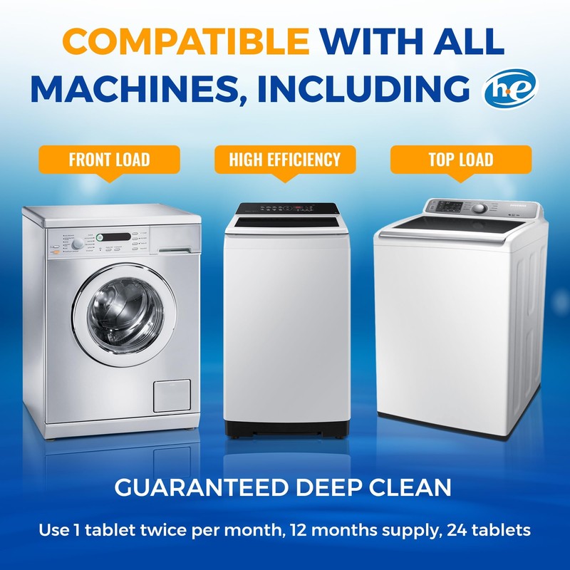 - One-Year Supply: With 24 tablets in each pack, our one-year supply ensures you have enough tablets for bi-monthly use, keeping your washing machine fresh and efficient all year long.