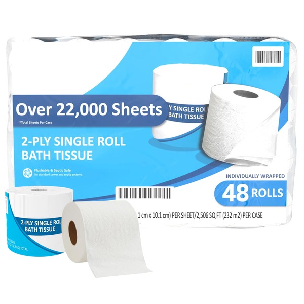 Bath Tissue, Standard Roll, 2-Ply, 4" x 4", 470 Sheets, 48 CT, Marathon Individually Wrapped