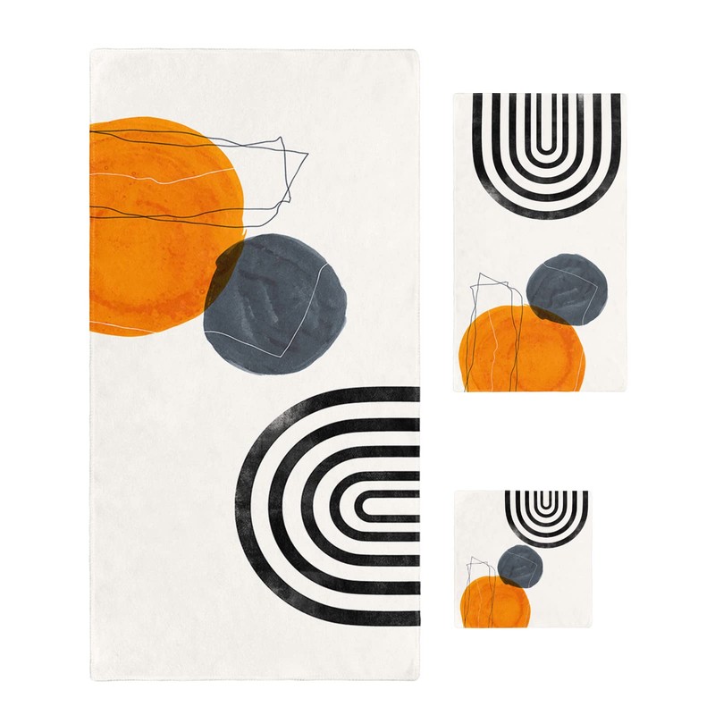 Bath Towel Sets,Mid Century Boho Terracotta Aesthetic Bathroom Towels Soft Hand Towel Washcloth Cotton Towel Set,Absorbent Soft Bath Set for Hotel Beach Pool Abstract Minimalist Art Towels