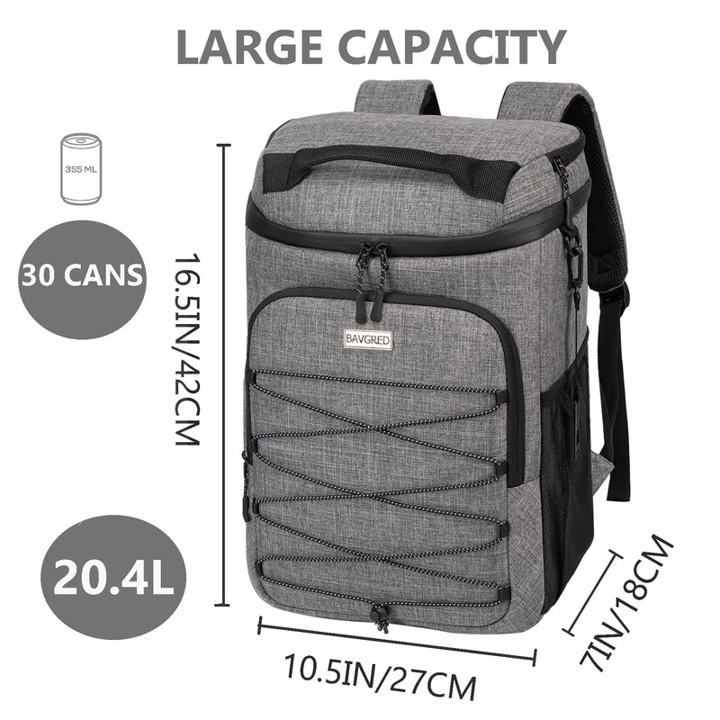 BAVGRED 30 Cans Cooler Backpack Insulated Waterproof, Backpack with Cooler Compartment for Men and Women, Soft Sided Cooler Bag, Lightweight Ice Chest Lunch Backpack for Beach Camping Picnic Hiking