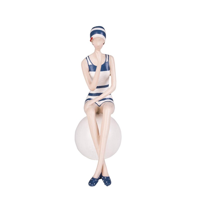 Beachcombers 7.8" Resin Lady On Ball Blue/White Suit Blue