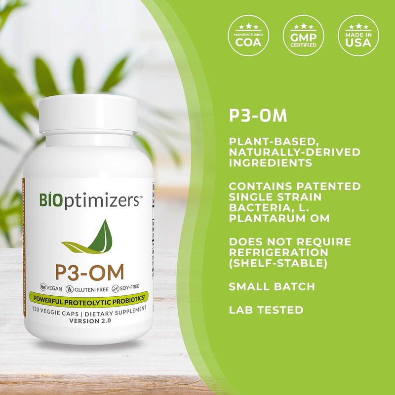 - IMPROVES GUT HEALTH - Too much bad microbes in your body can make healthy digestion a struggle. A probiotic supplement like P3-OM can provide your body with the optimal good microbes, which can help put your body back into balance.