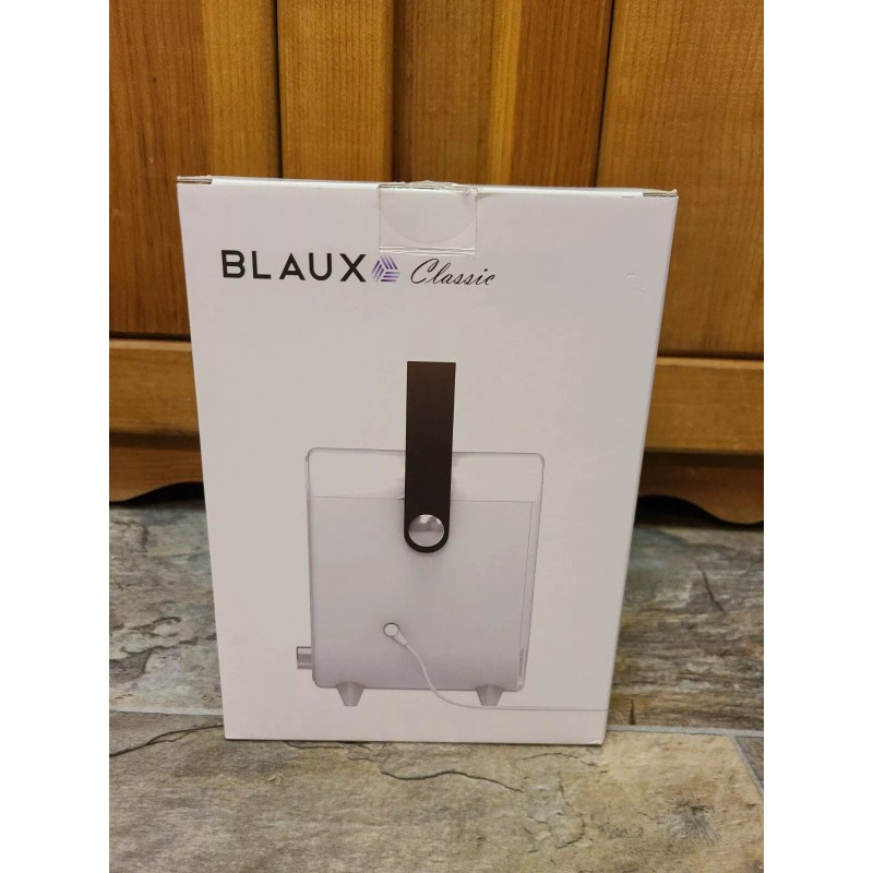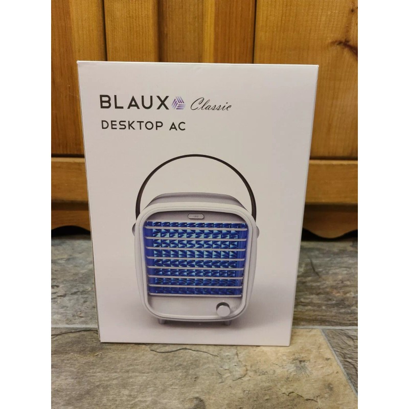 Blaux Classic Desktop AC Portable Cooling Fan. New in Box. Illuminated mood light and fan speed adjustment. This unit adds moisture to the air to prevent your skin, eyes, and nasal passages from drying out and becoming irritated. Comes with USB cord, 2 ice trays, 1 filter, see pics.