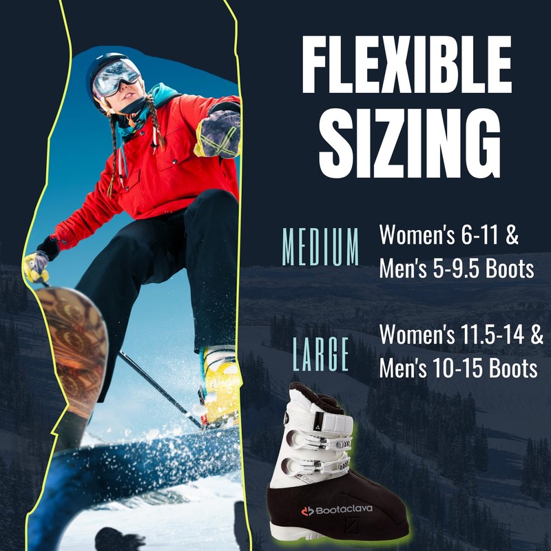 - Flexible Sizing - Medium ski boot cover sizing option accommodates Women's 6-11 and Men's 5-9.5 boots, while Large option accomodates Women's 11.5-14 and Men's 10-15 ski boots, ensuring a secure fit that stays in place throughout your ski adventures