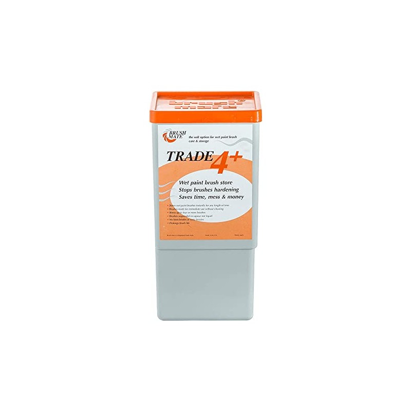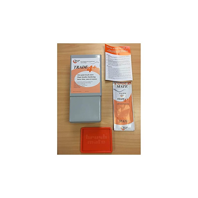 The handy Trade 4+ is ideal for smaller jobs and general DIY use. Wet paint brush storage for upto 4 paint brushes. The Brush Mate Trade 4 enables paint brushes to be used with used with oil based paints or varnishes and then to be stored, keeping the paint brushes moist and pliable and ready for reuse without the need for washing. Holds up to 4 or more brushes Impregnated Vapour Mate pad - no fluid Resilient nylon construction Convenient size 1 x pad included