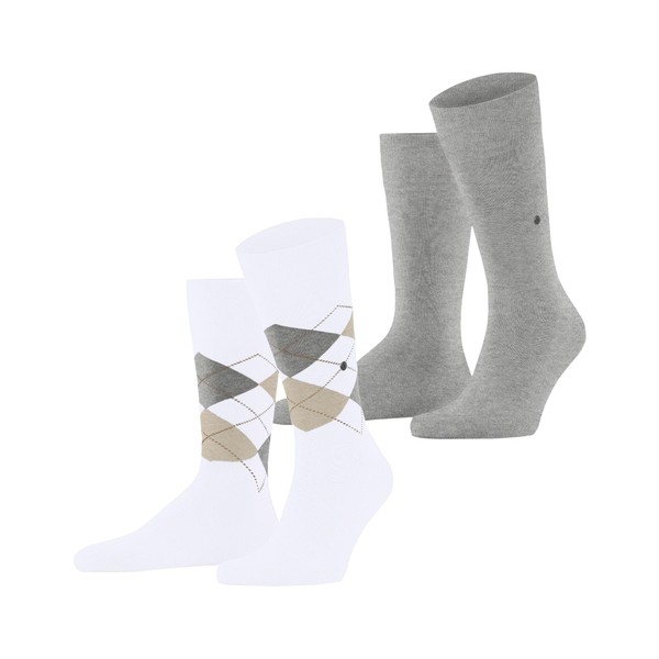 Burlington Men's Everyday Mix Socks 2-Pack M SO Cotton Patterned 2 Pairs, White (White 2000), 40-46, White (White 2000)