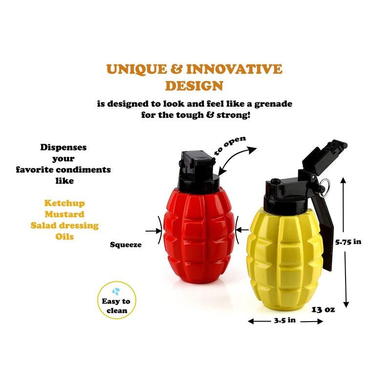 - UNIQUE & INNOVATIVE DESIGN: This novelty condiment dispenser (CBG-1005) is designed to look and feel like a grenade for the tough & strong!