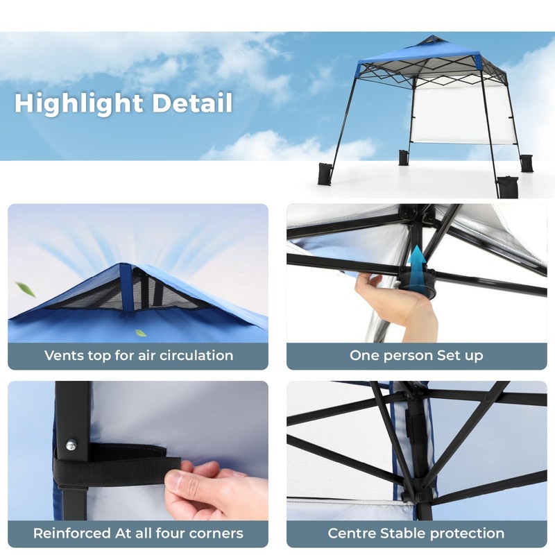 Canopy Tent 8x8 ft Outdoor Pop Up Canopy with Vented Top,Easy Up Canopy with One Person Set Up Center Lock,Portable Beach Tent Sun Shelter,Blue