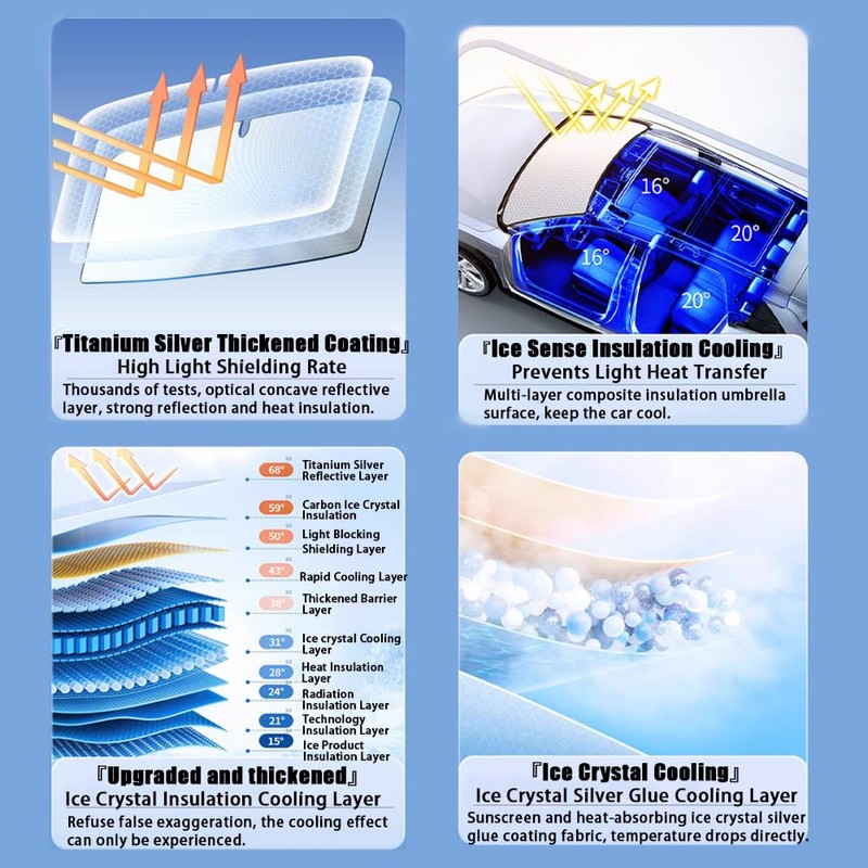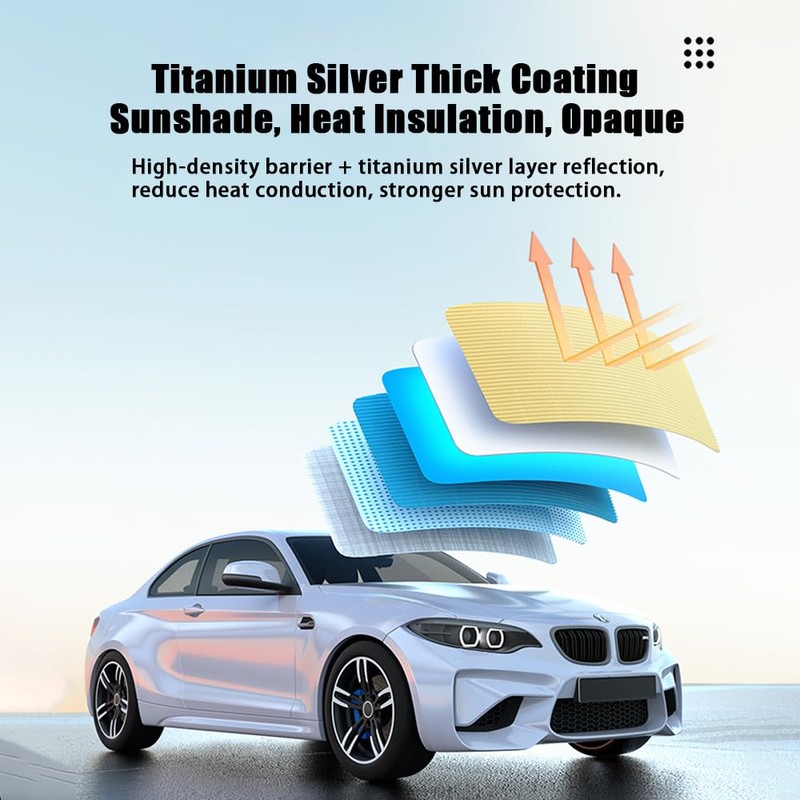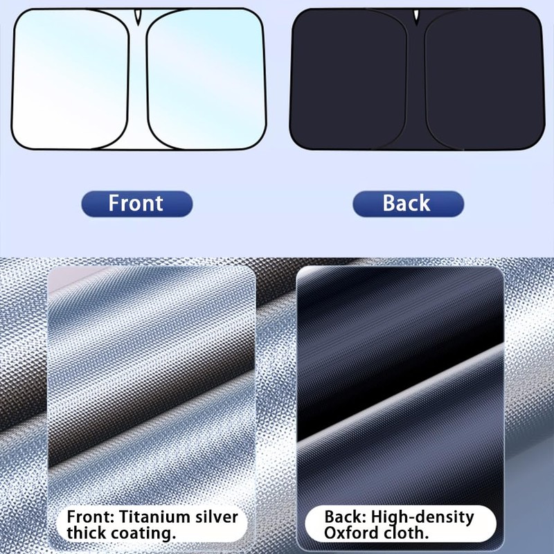 - 【High Quality】Car Front windshield sunshade is made of high quality material with high density, high-density barrier + titanium silver layer reflection, reduce heat conduction, stronger sun protection, high temperature resistance, effective protection and long service life.