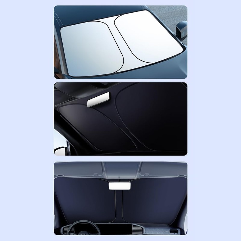 - 【Effective Sun Protection】Strong anti-ultraviolet technology, cool inside the car. Car Front Windshield Sunshade can effectively block strong direct sunlight, shorten the cooling time of the vehicle.This will keep your car cool and comfortable in the hot summer and give you a more comfortable driving experience.