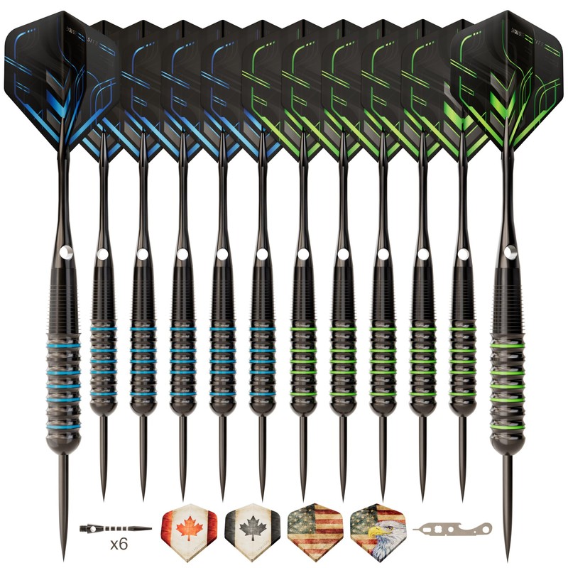 CC-EXQUISITE Darts Set | Professional 12 X 20/22g Metal Tip Darts | Steel Tip Darts with 24 Flights & 18 Aluminum shafts + Dart Tool, Rubber O-Rings