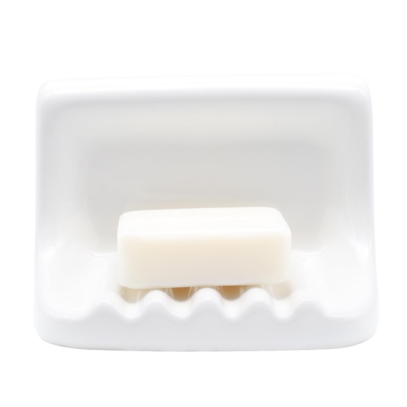 • Bathroom Accessory Ceramic Soap Dish Soap Holder for Shower Wall,DImension: 4-3/4"(H) x 6-1/2"(L) x 3-3/4"(W).