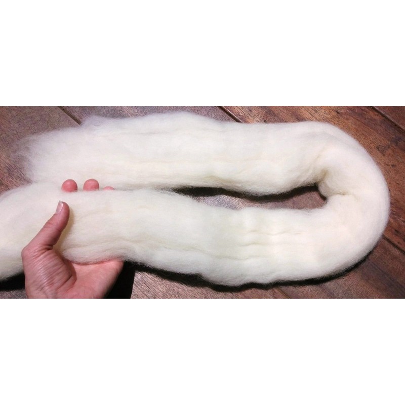 This beautiful Roving Top is 36ft long per each pound 1 lb x 13 lbs = 468 Feet long! (156 Yards long!) Natural White color (unbleached) and super soft.