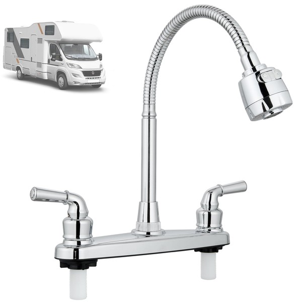 Cinwiny RV Kitchen Sink Faucet Deck Mounted 8 Inch Camper Kitchen Faucets with Flexible Arc 360 Degree Spout, Kitchen Mixer Taps for Campers Motorhome Travel Trailer, Polished Chrome