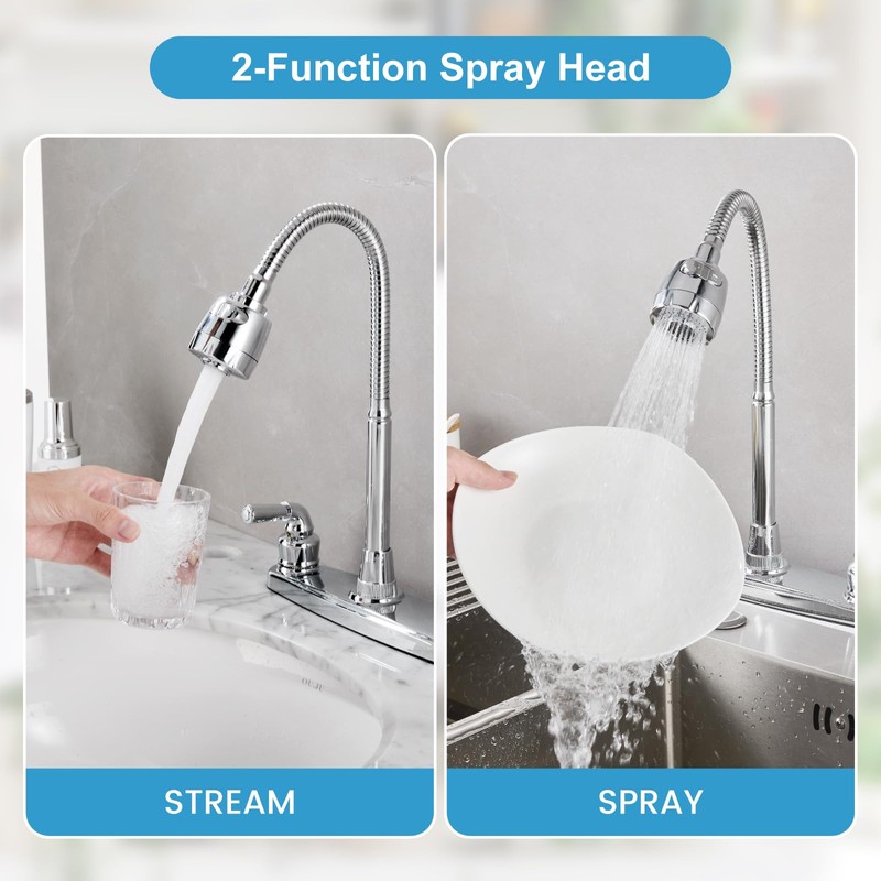 - DUAL WATER FLOW MODE: The RV kitchen faucet has two water flow modes: spray and stream. Just easily turn the handle to change the water flow mode according to your needs, bringing you a comfortable water experience.