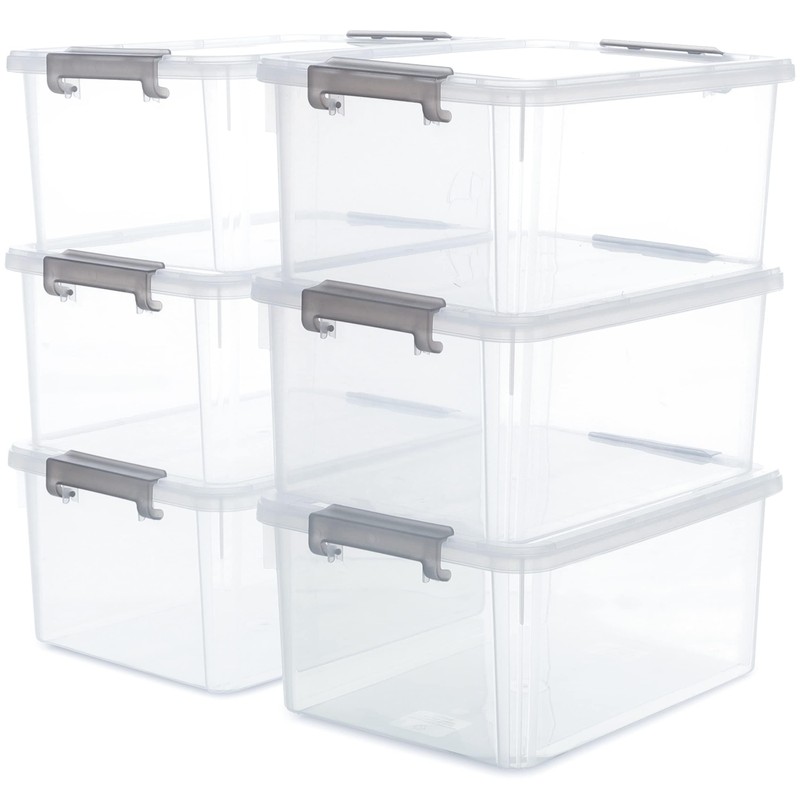 - 👍【17-quart Capacity】Package includes 6 containers for organizing, single measuring 15.94"L * 11.61"W * 7.28"H, capacity 17 QT. Perfect for large storage needs in the closet, garage, bedroom, basement, camping, office, etc;