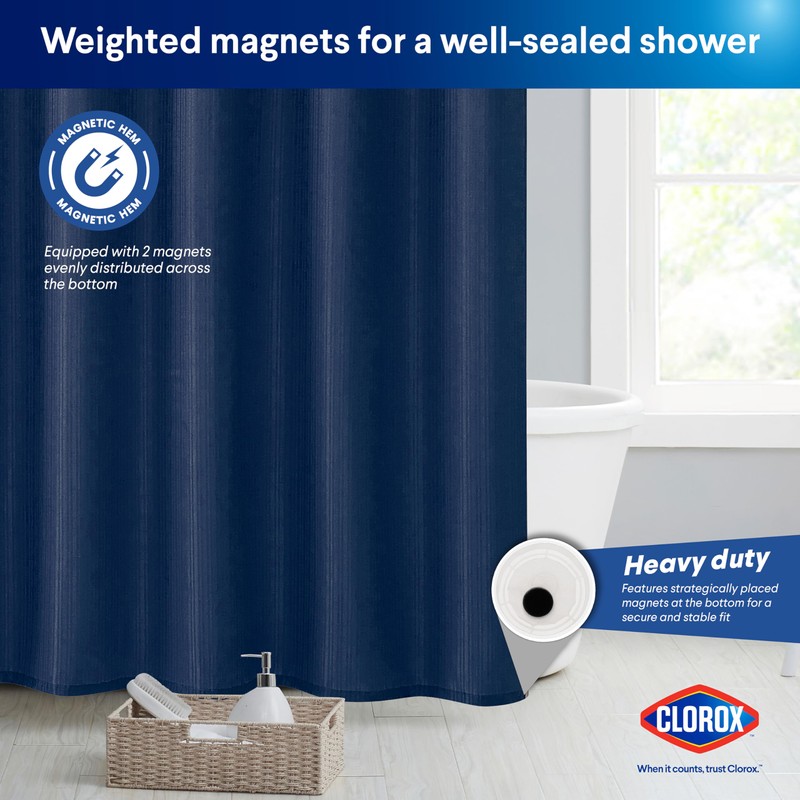 CLOROX Bathroom Shower Curtain with Waterproof Lightweight PEVA Liner Set, Extra Long Stall Shower Size for Bathroom, with Weighted Magnets and 12 Metal Hooks - 72" x 78" Midnight Blue