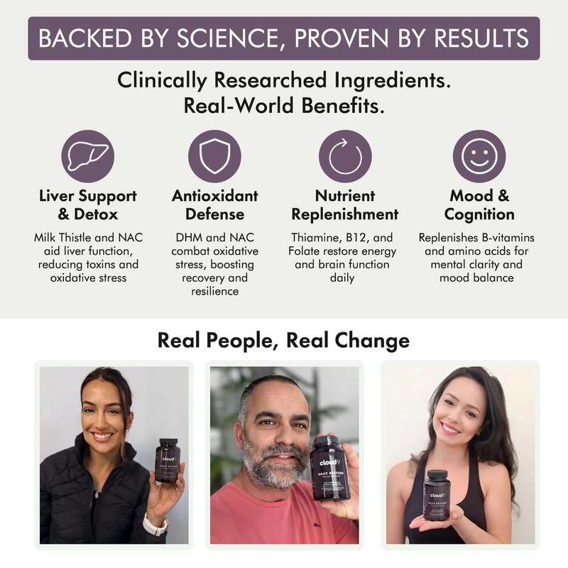 Cloud9 Daily Restore – Liver Support & Nutrient Replenishment Supplement with Essential Vitamins for Energy, Mental Clarity & Recovery After Drinking – Made in USA – 90 Capsules