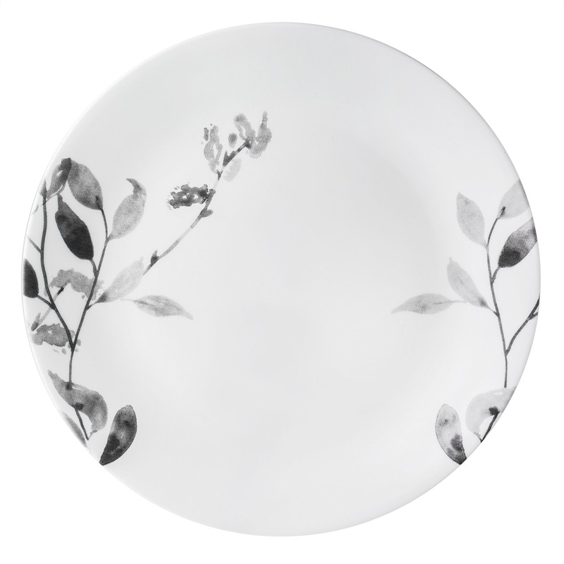 Corelle 12-Piece Vitrelle Misty Leaves Chip and Break Resistant Dinner Set, Grey