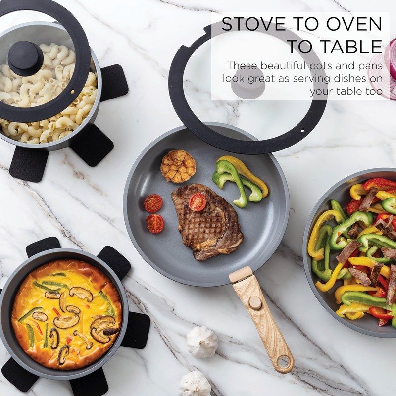 - Unmatched Versatility: Our removable handles provide ultimate flexibility, allowing you to easily move your cookware from stove to oven to table to fridge with ease.