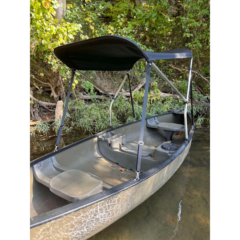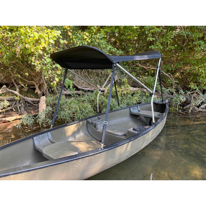 - Black Color Design - The Cypress Rowe Outfitters Kayak Canopy Sun Shade/Bimini Top features a stylish round aluminum frame with a sharp black canvas cover so you can travel in style while remaining protected from the elements. It protects from the sun, but also from the rain, as it is a true umbrella for kayak or canoe.