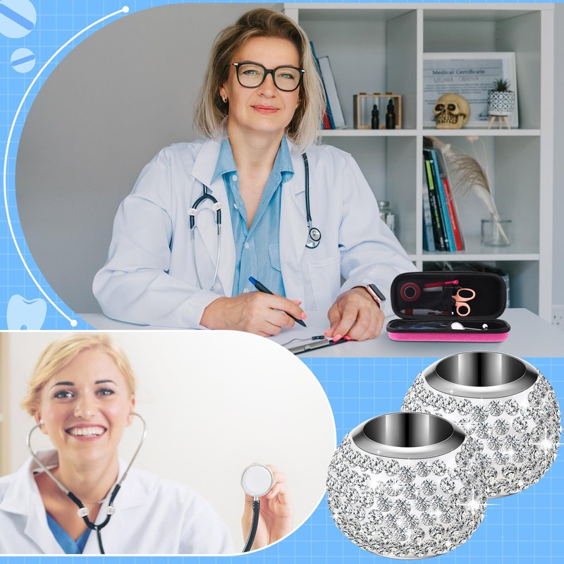 - Ideally Sized Rhinestone Stethoscope Decorative Set: the zinc alloy stethoscope charms are thoughtfully sized with an inner diameter of about 0.39 inches, and an outer diameter of about 0.79 inches, compatible with different stethoscope sizes; The stethoscope charms come with double sided tape for fit; You can cut as much tape as needed and place it on the charm's back to prevent it from sliding around on your stethoscope, ensuring snug fit
