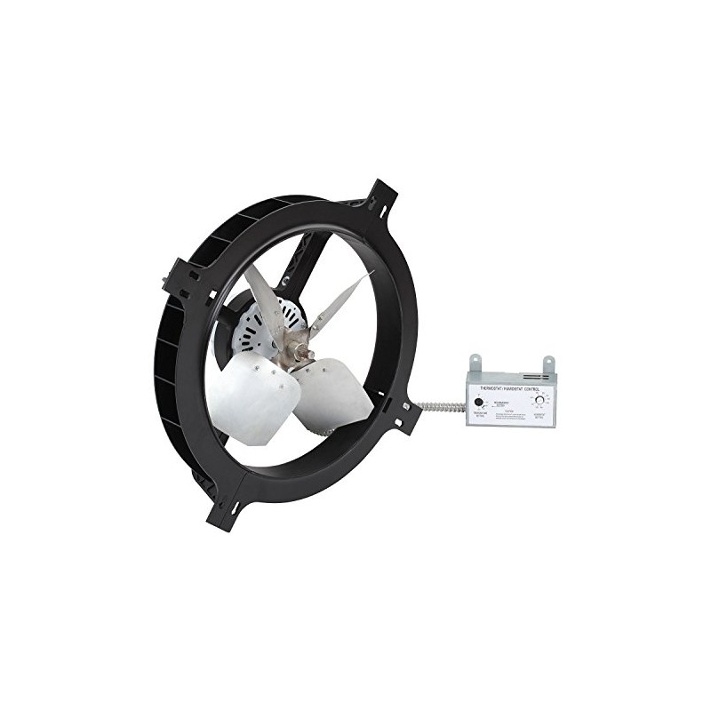 - Featuring a built-in adjustable thermostat, this ventilator cools and circulates attic air, reducing air conditioning load and preventing heat and moisture buildup. Optional aluminum gable shutters are available separately. For maximum efficiency, the shutter area should be greater than the outlet area of the ventilator.