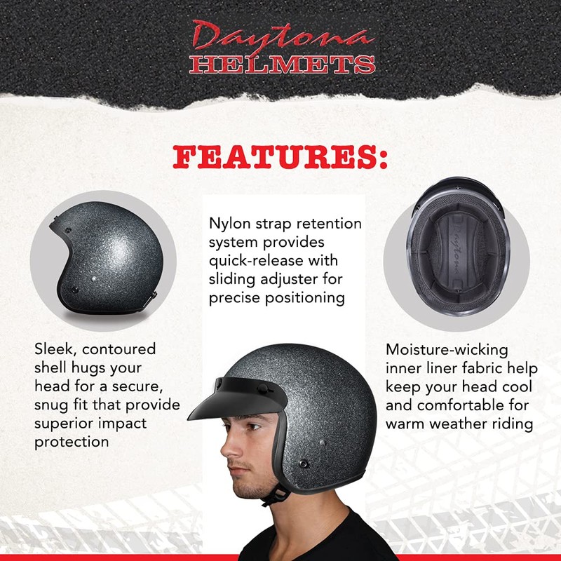 Daytona Helmets 3/4 Shell Open Face Motorcycle Helmet – DOT Approved [Gun Metal Flake] [L]