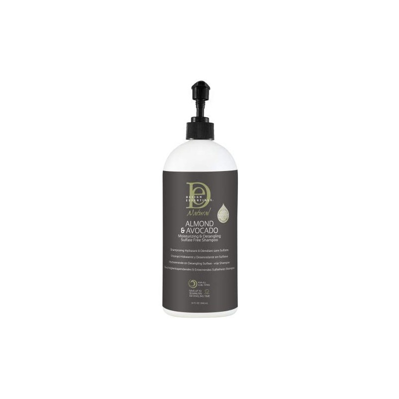 Our Design Essentials Natural Almond & Avocado Moisturizing & Detangling Sulfate-Free Shampoo infused with nourishing botanicals to hydrate, soften, and detangle, is a gentle cleansing solution to rid the hair of build-up without stripping hair of natural oils. Experience a creamy lather, even on your first wash, resulting in each strand feeling soft, manageable, and noticeably hydrated. Sulfate-Free formula infused with Almond & Avocado Save up to minutes detangling time Natural ingredients safe for daily use NO PARABENS - NO PARAFFIN - NO PETROLATUM - NO MINERAL OIL How-To-Use In Simple Steps:Step : Wet hair. Apply Almond & Avocado Moisturizing & Detangling Sulfate Free Shampoo and bring it to a lather.Step : Rinse thoroughly. Repeat as necessary.Step : Follow with Natural Almond & Avocado Moisturizing & Detangling Conditioner.