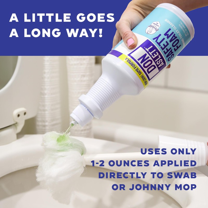 - A LITTLE GOES A LONG WAY. Safety foam cleans and deodorizes with only 1-2 oz of liquid applied to the Johnny Mop bowl swab. Save money by using less than other toilet bowl cleaners.