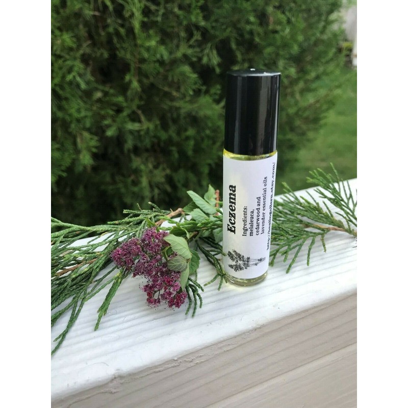 Eczema blend contains cedarwood, melaleuca, and lavender. All oils are 100% therapeutic grade and pure. Always check with your doctor before use if you are pregnant or breastfeeding! If this blend is for a child, please let me know when you order so I can dilute it appropriately.