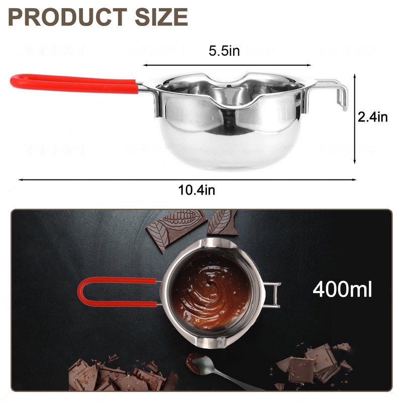 - Product Usage: Very suitable for melting butter, cheese, caramel, chocolate, candle making, suitable for most pots. Heat delicate food more gently than a regular pot or stew pot. Suitable for home kitchens, hotels, shops, restaurants, etc.