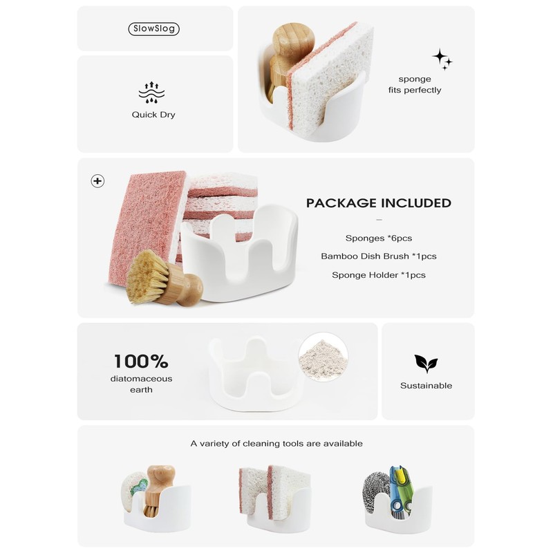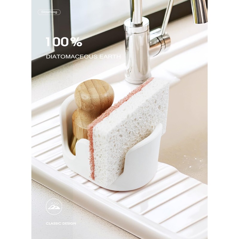 • Stylish and Practical: Combining functionality with durability, this diatomite sponge stand is perfect for modern kitchens. Its quick-dry and absorbent stone design is versatile, suitable for sponges and dishwashing brushes