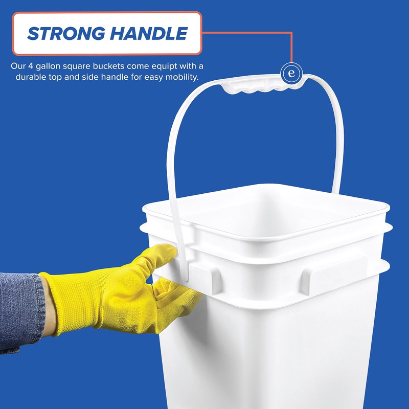 ePackageSupply 4 Gallon Square Bucket with Lid & Plastic Handles, Food Storage Pail, Heavy Duty & Durable, HDPE BPA Free (3)