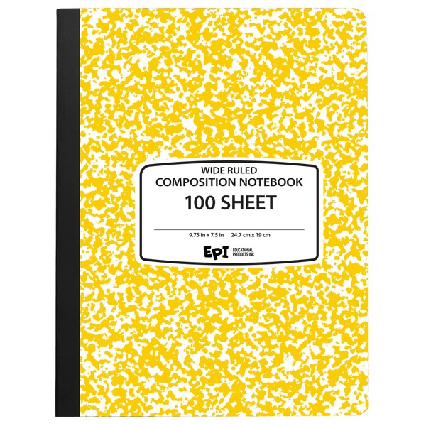 EPI Wide Ruled Marble Composition Notebook, Yellow, 100 Sheet, 4-Pack