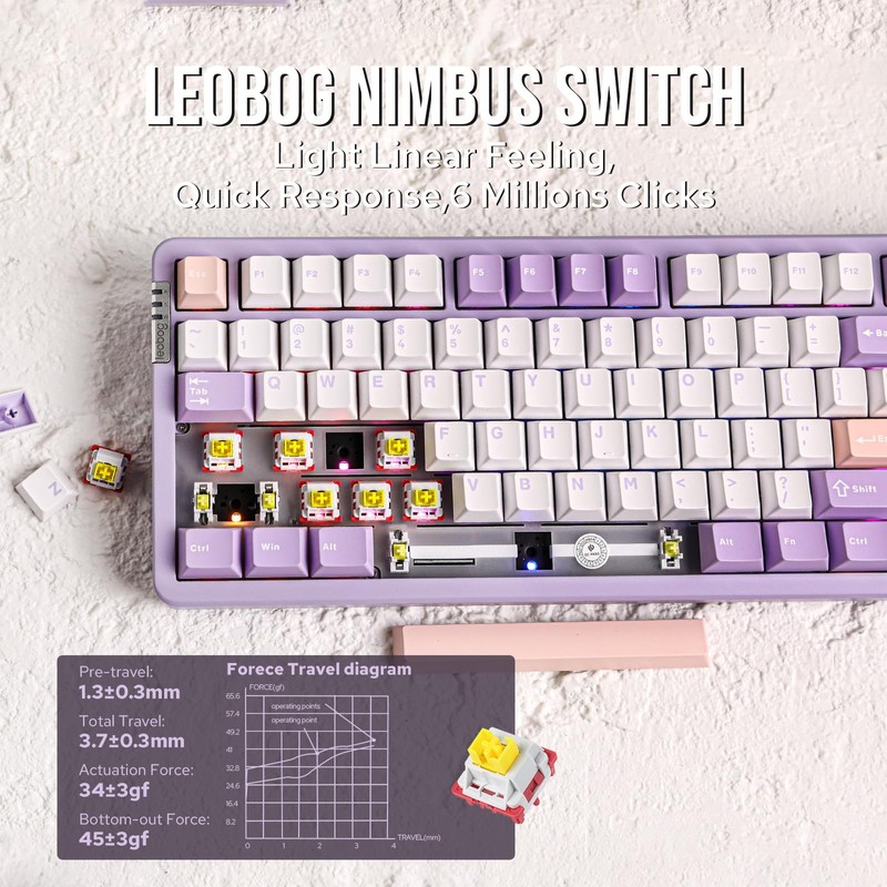 - Versatile Connectivity & Long-Lasting 4000/8000mAh Battery: The LEOBOG Hi86 is designed for maximum adaptability, featuring triple-mode connectivity: Bluetooth, 2.4GHz wireless, and USB Type-C wired options. Whether you prefer a clean, wireless setup or the stability of a wired connection, the Hi86 accommodates your needs. It comes with two battery options: a 4000mAh battery (Black model) or an 8000mAh battery (White, Purple, Blue models), ensuring long-lasting performance to power through work or play