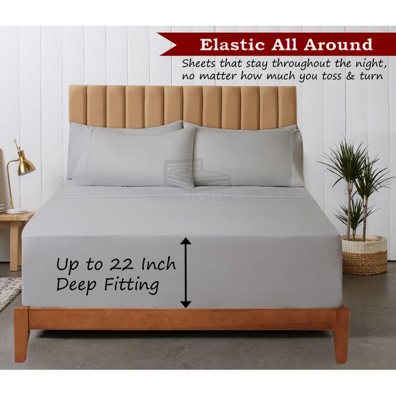 - ♥ PREMIUM EGYPTIAN COTTON SHEET & PILLOWCASES SETS: Cottington Lane extra deep pocket California King bed sheets are crafted from cotton yarns - sateen weave, offering a full silky feel that is breathable at the same time. You can have California King hotel collection extra deep sheets that make your bedroom look cozy. California King extra deep best quality Silver Grey Solid bedding sheets & pillowcases have a classic design.