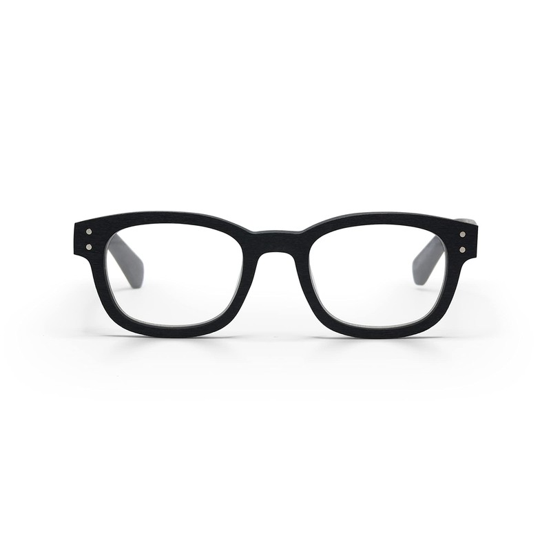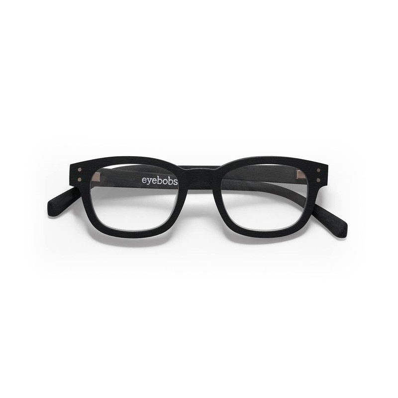 eyebobs Biff Unisex Premium Reading Glasses for Men and Women | Black front and temples with matte woodgrain finish - 00 | Non-Polarized Narrow Square Reader Glasses - 1.50 Magnification