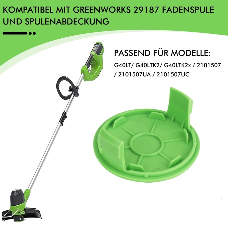 - The spool cover is compatible with Greenworks grass trimmer G40LT/ G40LTK2/ G40LTK2x / 2101507 / 2101507UA / 2101507UC