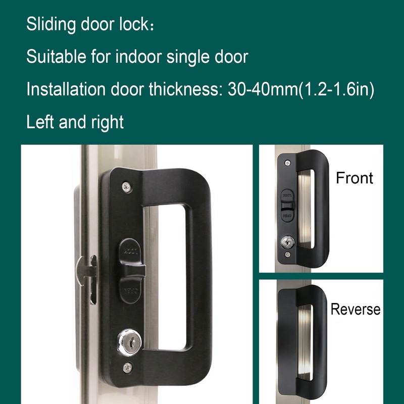 - Patio Door Handle Easy to Install: Works on aluminum frame door panel thickness 30- 40 mm/ 01.1-1.6 inch. Comes with install accessory kit, easy to install, great replacement parts for patio door lock