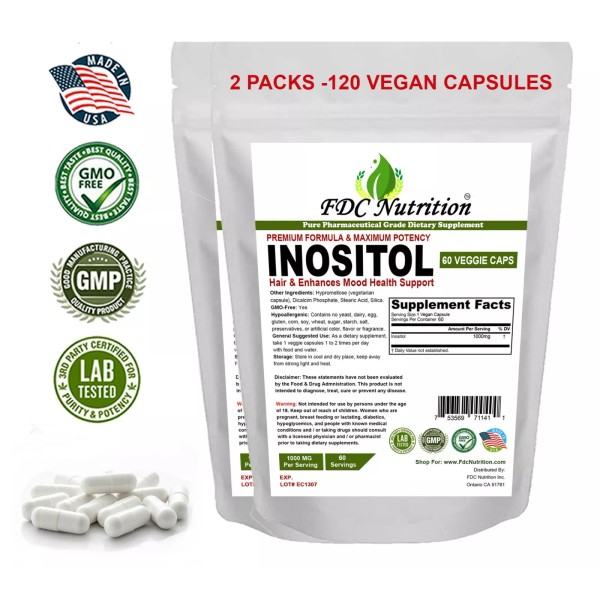 - Here is an organized and elegant presentation of the 5 key points for the FDC Nutrition Inositol 1000 mg 120 Vegan Capsules: