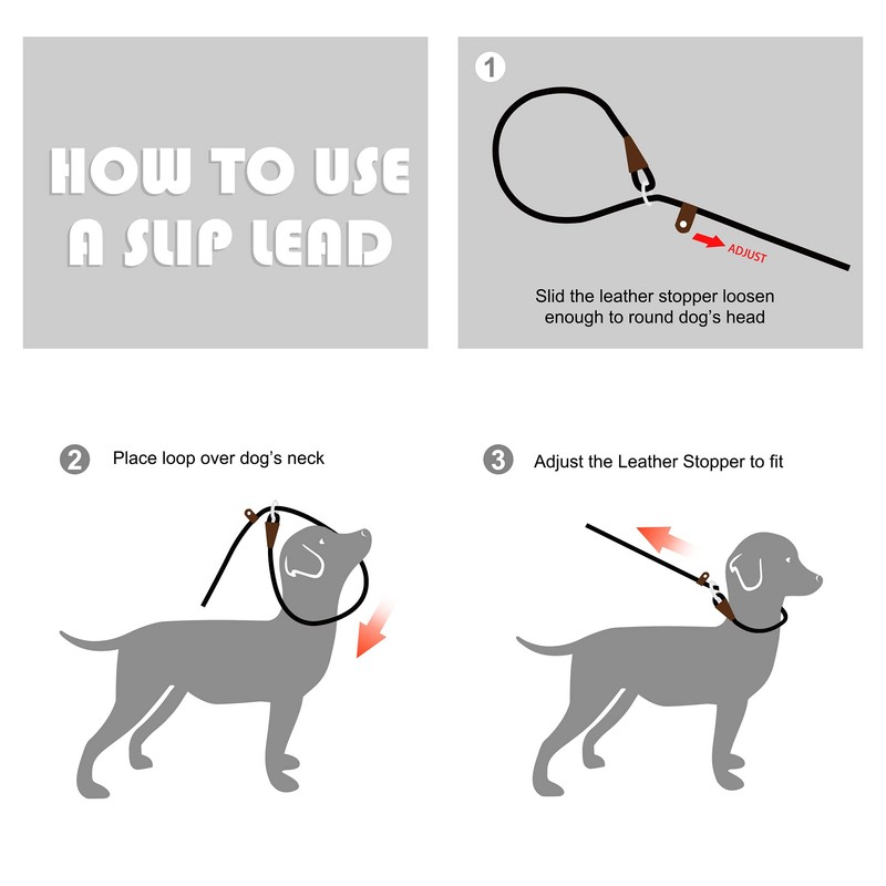 The slip-on lead function is Anti-pull design. Without collar or harness, adjust the loop, extremely simple and easy to put on. The slip leash tightens when your dog pulls and loosens when the behavior is corrected. Super easy to control dogs and reduce the pulling.