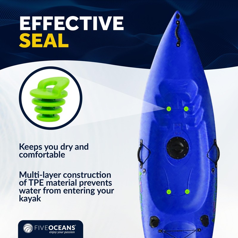 Five Oceans Kayak Scupper Plug 2-Pack Small, Fits Drain Holes 1-1/4" to 1-1/2", Scupper Plug Drain Hole Stoppers with Handle Universal Kayak Plugs for Sit on Top of Kayak - FO4754