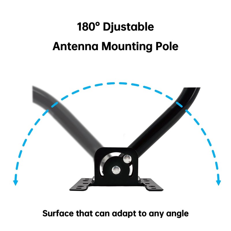 - Adjustable Design: The antenna pole mount bracket is fully adjustable. It can be adjusted up to 180° vertically to achieve the best signal reception, accommodating flat, angled, or vertical positions.