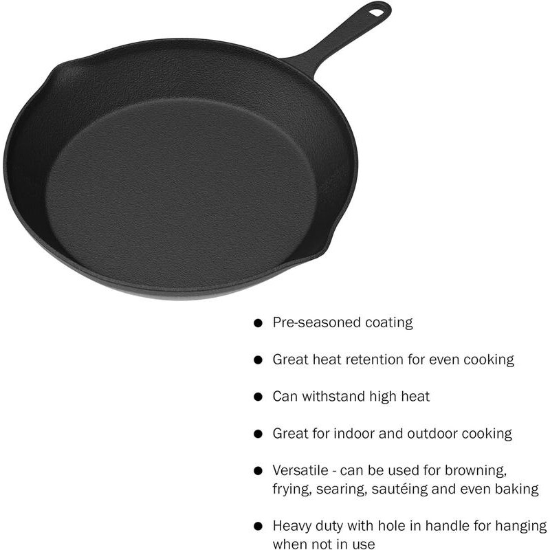 - SET OF 3 FRYING PANS - This cast iron cookware set includes 10-, 8-, and 6-inch skillets suitable for cooking a variety of different foods such as pancakes, crepes, burgers, and more. Use these oven-safe skillets to prepare breakfast, lunch, and dinner