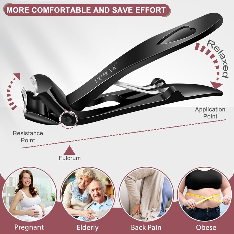 FUMAX Angled Large Nail Clippers for Seniors, Toenail Clippers for Thick Toenails Nails, Mess Free Toe Nail Clippers with Catcher, Arthritis Nail Cutter with Wide Jaw for Men Women-Black